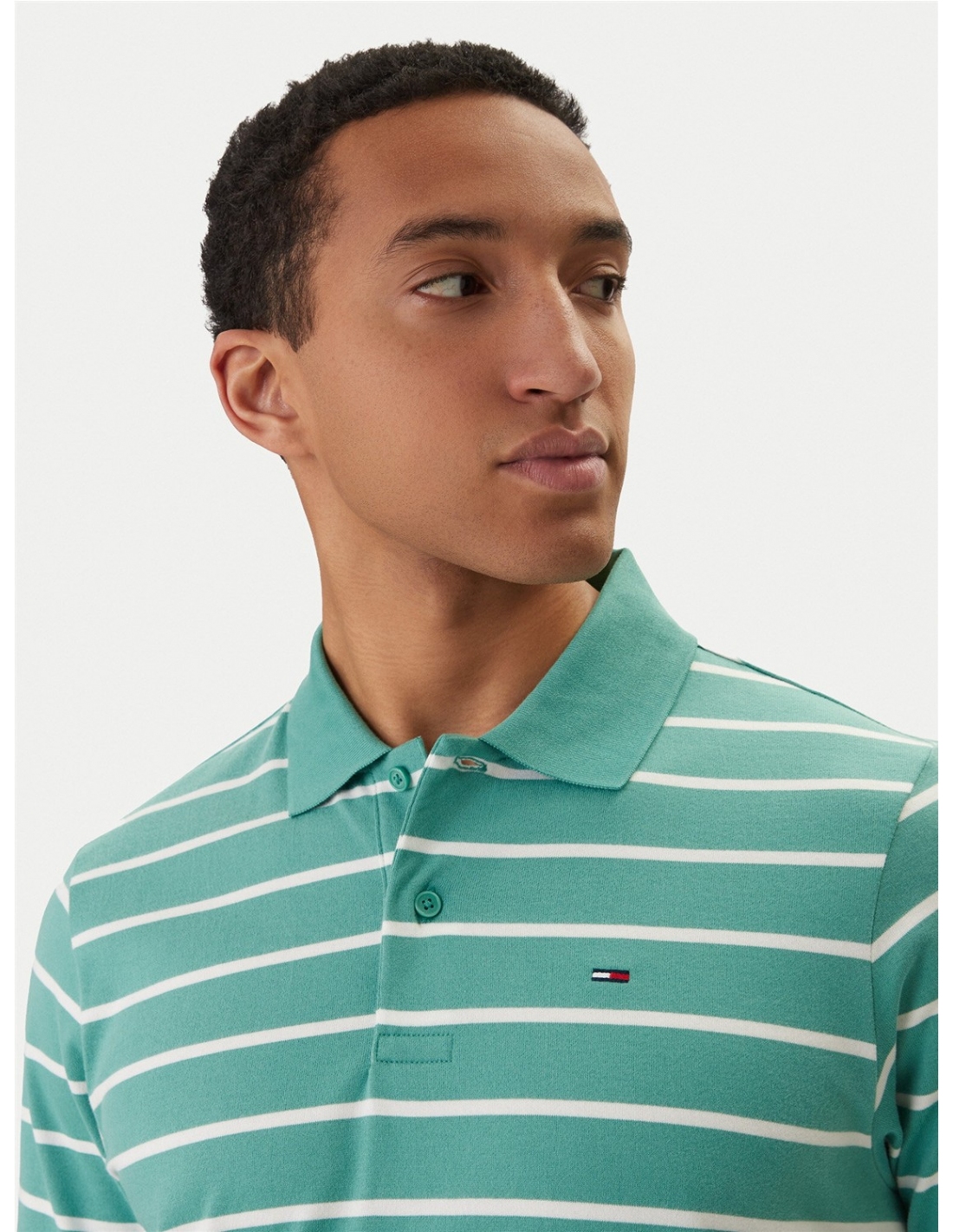 puro algodón y luce unas llamativas rayas. Características • Punto de puro algodón • Hilo teñido • Diseño integral de rayas horizontales • Cuello de polo • Tapeta de dos botones • Detalles distintivos de Tommy Jeans • Logo de Tommy bordado en el pecho