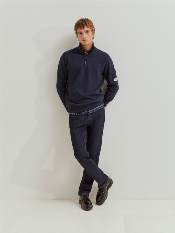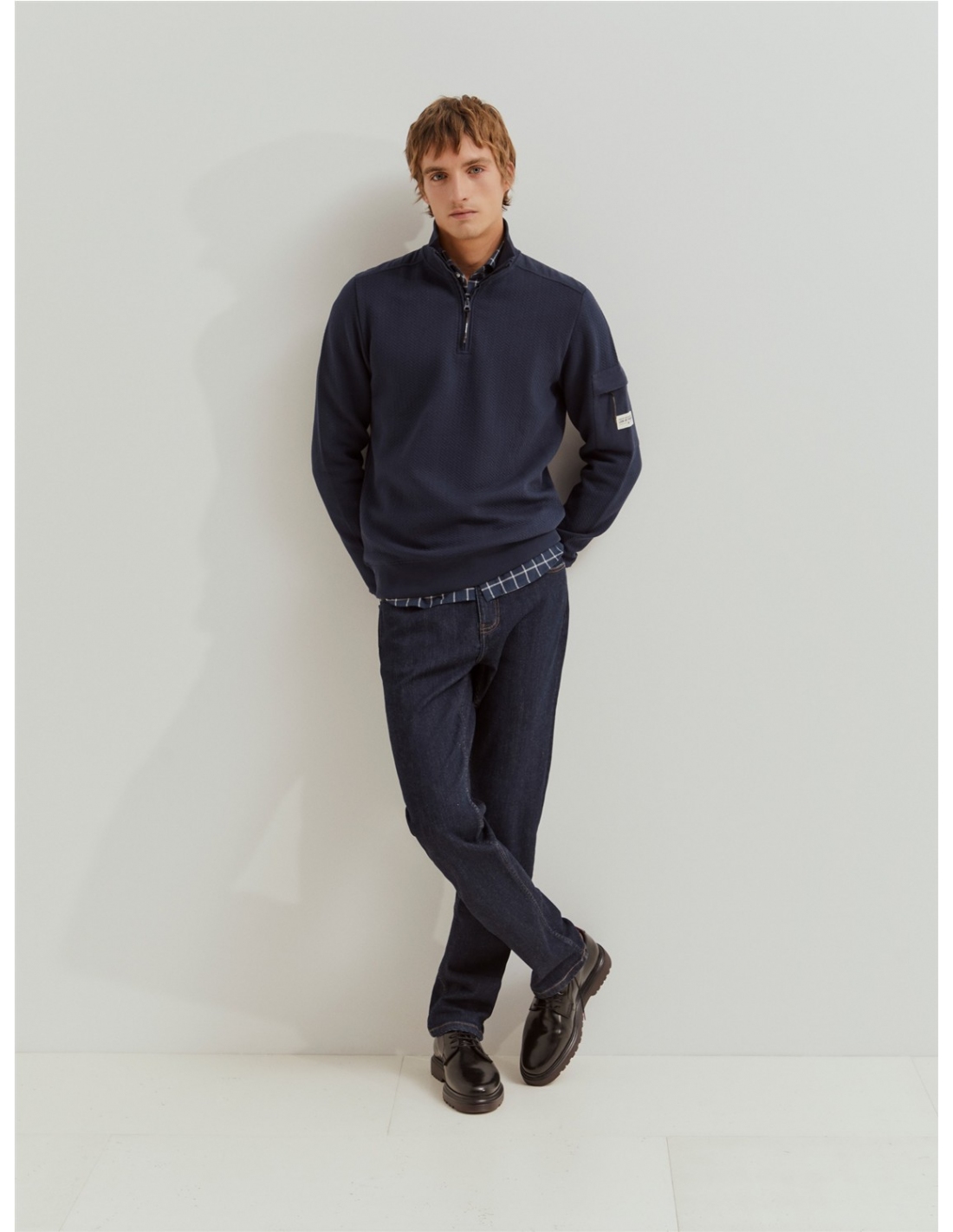 Suéter de manga larga con cremallera frontal, perfecto para el día a día, fácil de poner y práctico. Cuenta con un bolsillo en la manga con cremallera y cursor personalizado, además de una etiqueta personalizada en contraste que le da un toque distintivo. La cremallera frontal con cursor en contraste permite un ajuste rápido y cómodo, lo que le da un toque funcional y elegante.