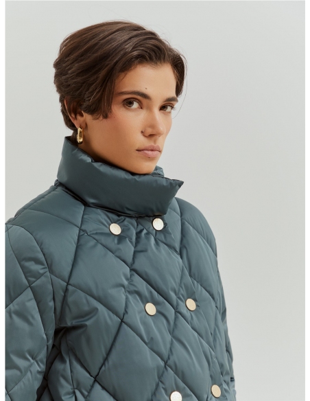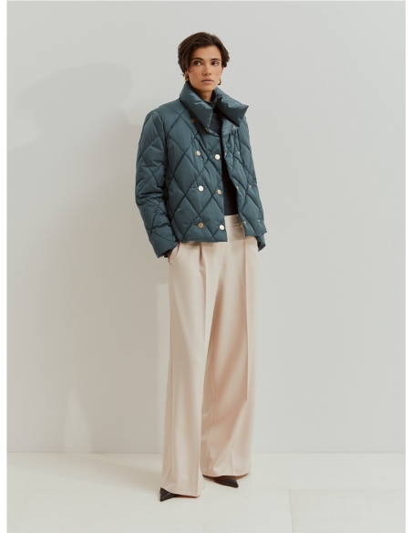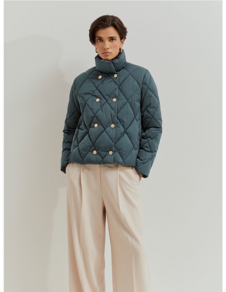 Chaqueta acolchada de doble botonadura, perfecta para protegerse con elegancia en los fríos días de invierno. Doble botonadura con botones de presión personalizados con el monograma de la marca. Forro interior también con el monograma LP. Bolsillos laterales. Disponible en varios colores.