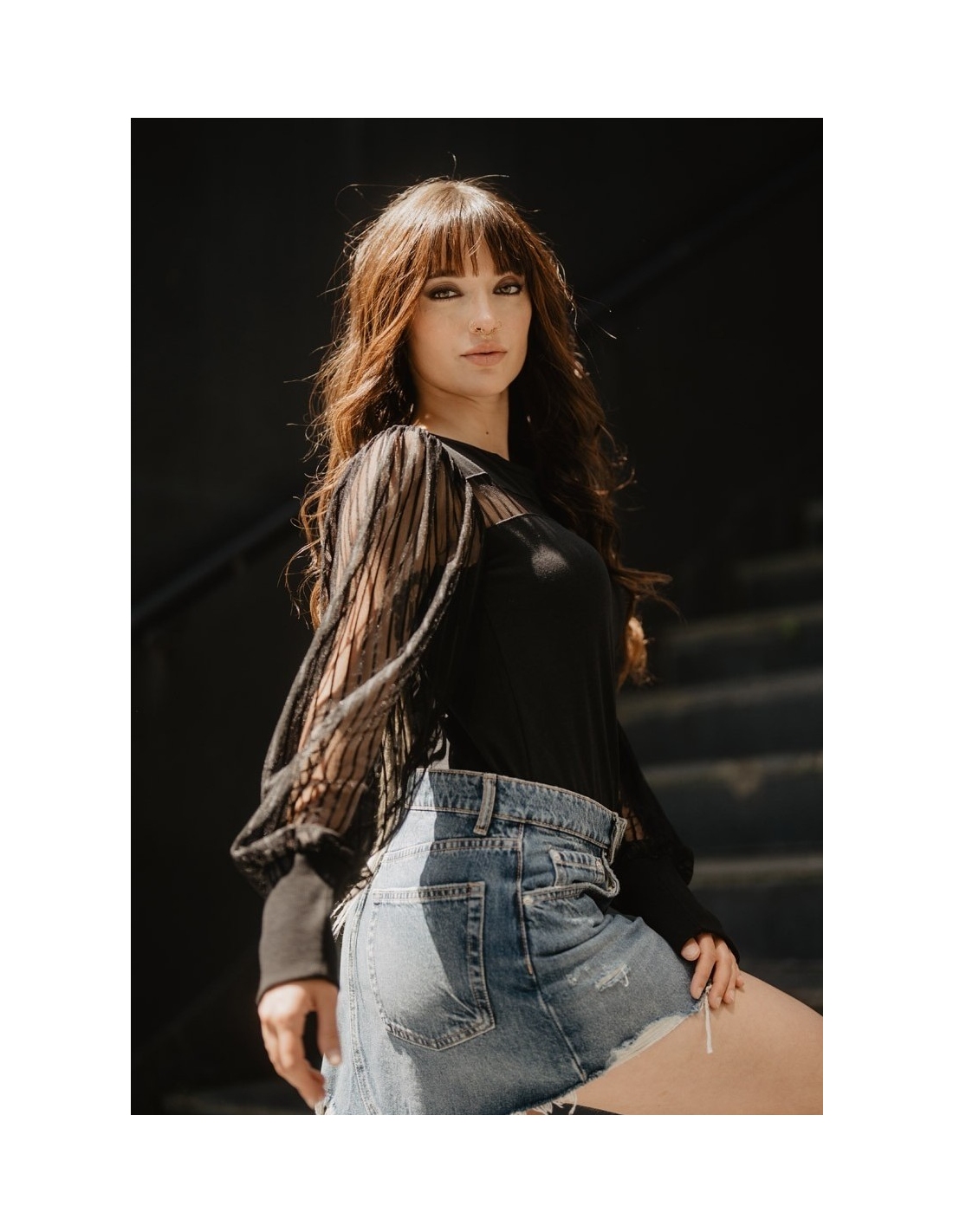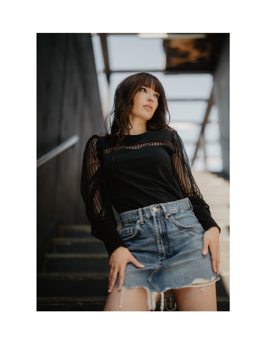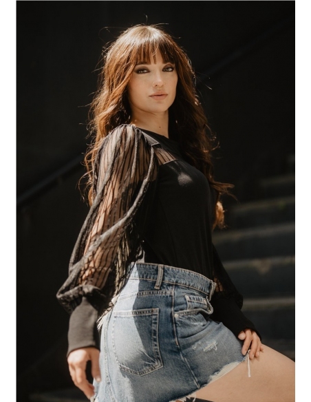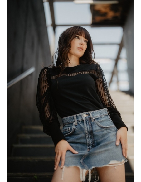 Camiseta con mangas abullonadas de tul.