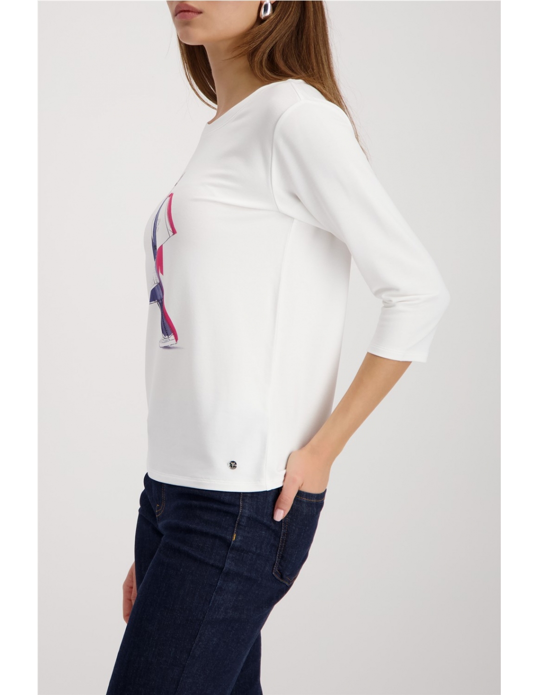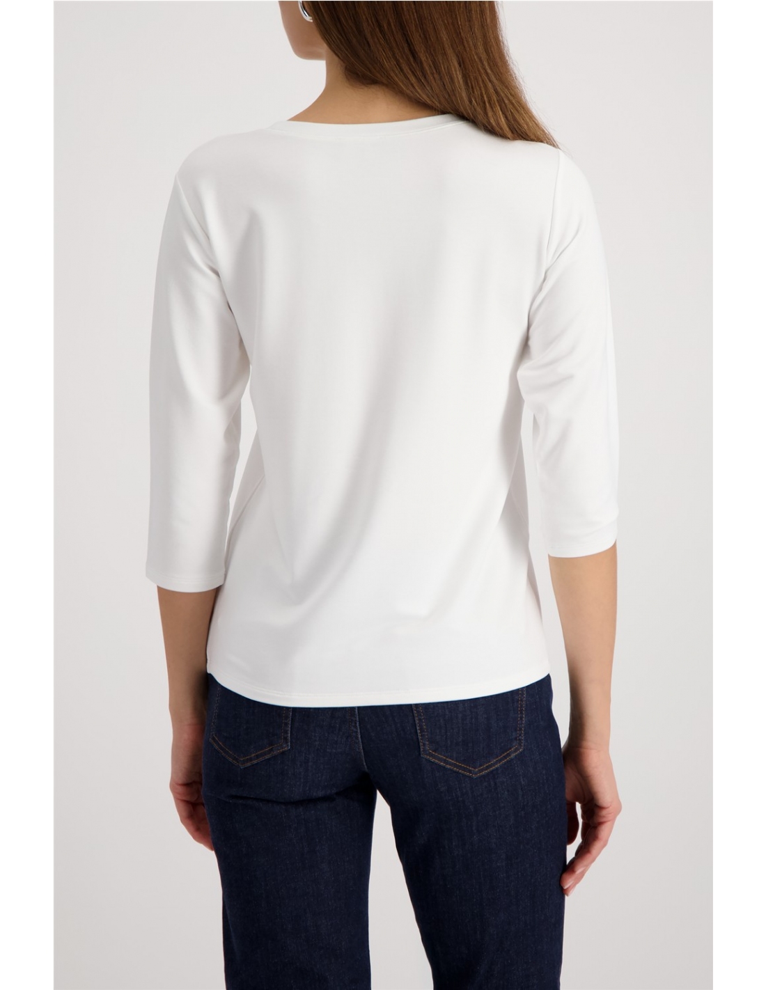 Camisa elegante confeccionada en viscosa fluida con modal, mangas ¾ y detalles de pedrería: para un estilo sin esfuerzo.
