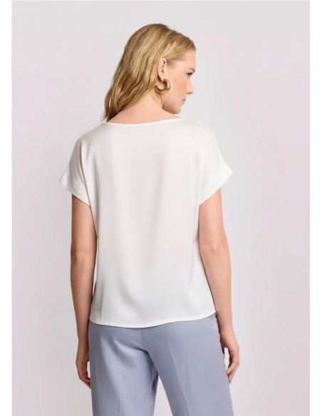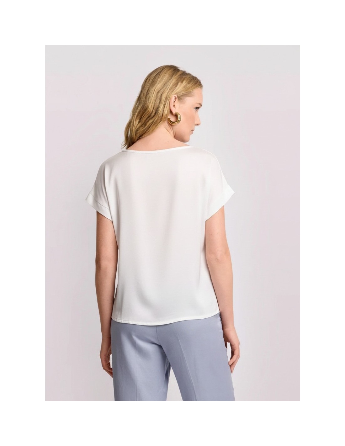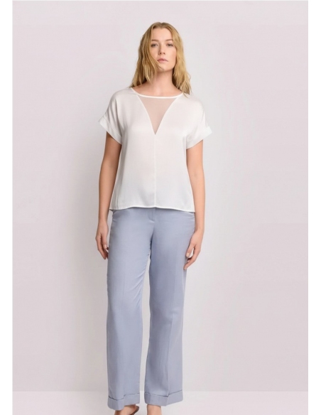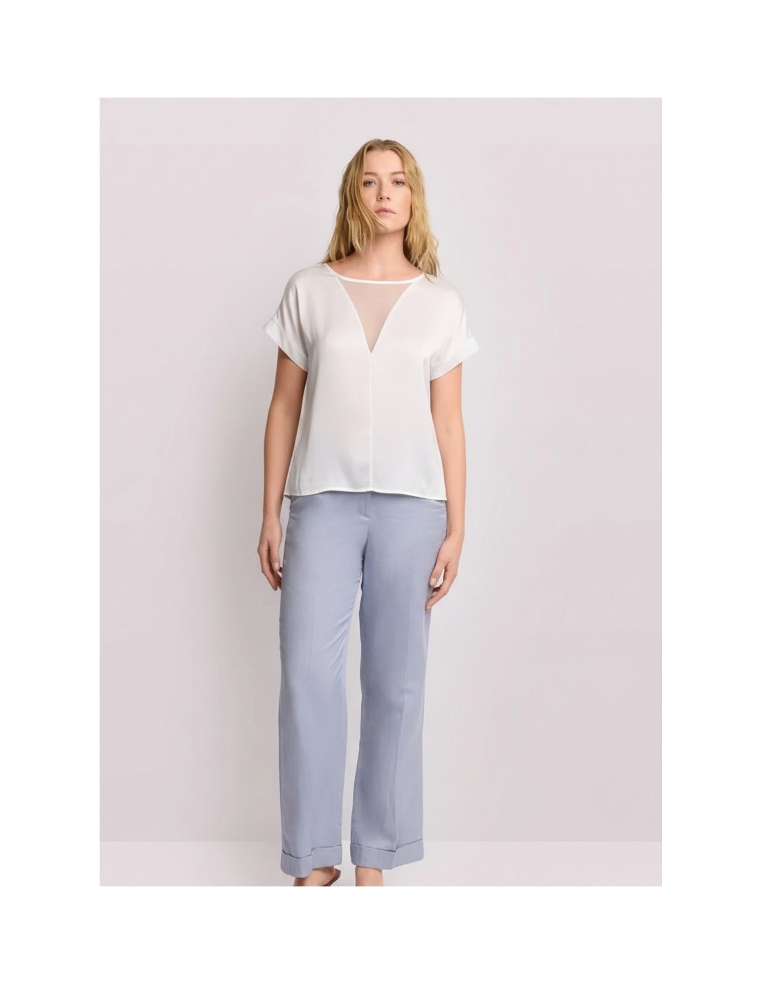 Top fluido de la colección Pure Verve Con inserción de tul transparente en el escote Manga corta de estilo japonés con puño fino Cuello redondo y silueta holgada