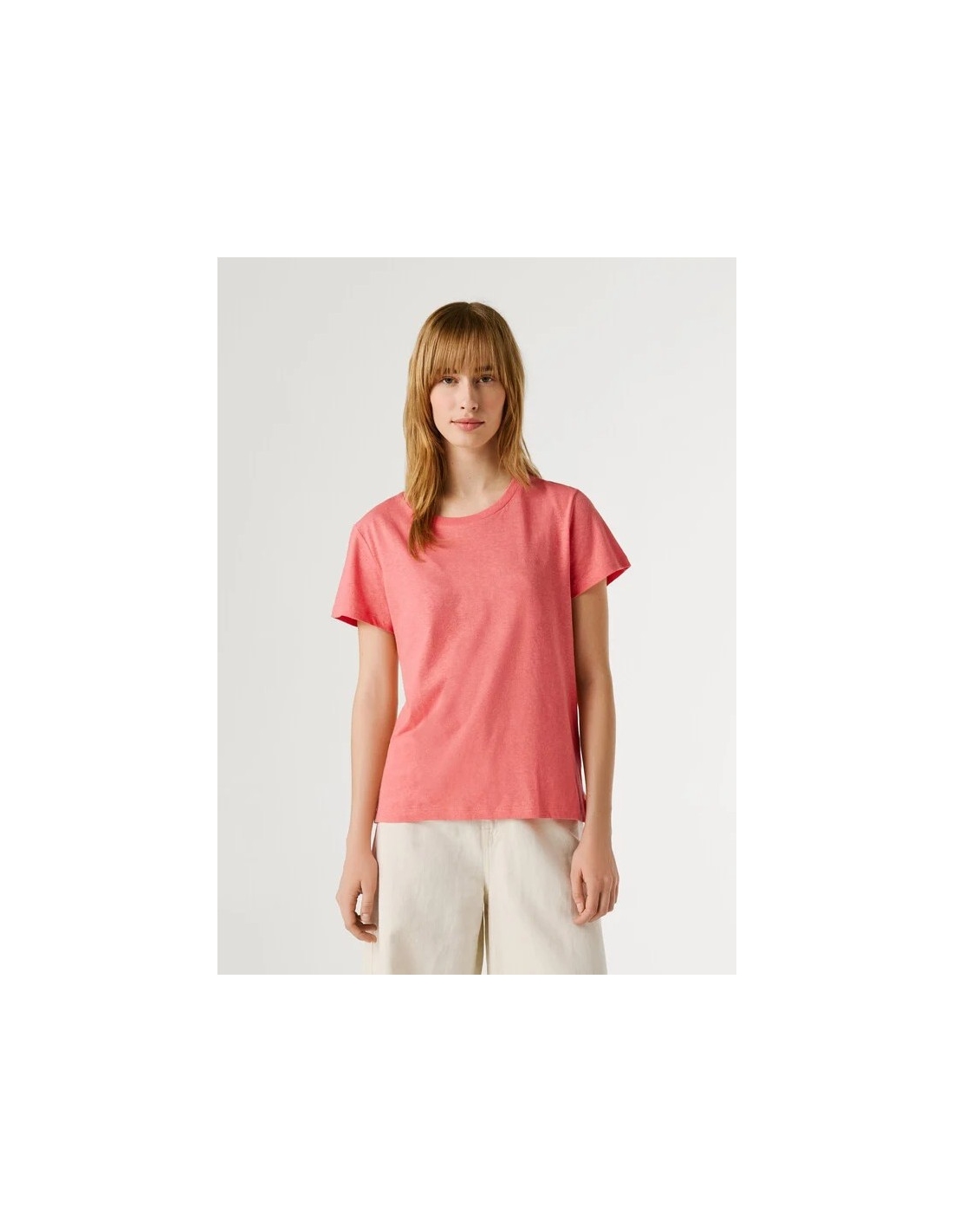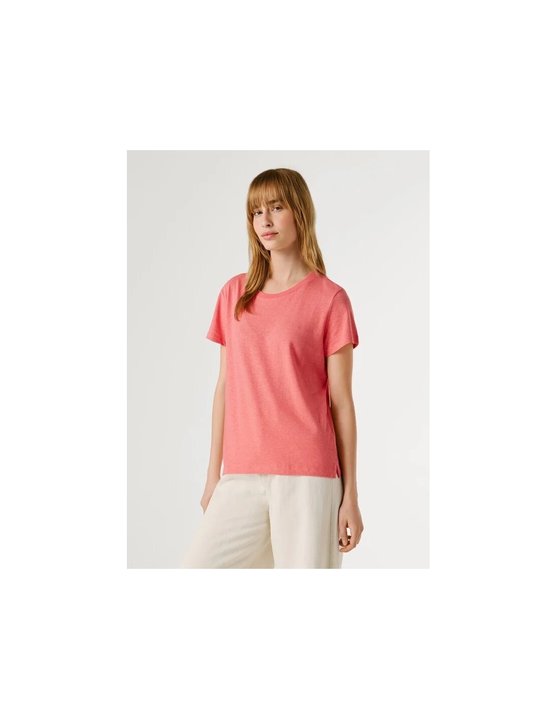 - Camiseta confeccionada en una mezcla de lino y algodón - Cuello redondo con detalle canalé - Manga corta - Color liso - Logo PEPEJEANS a tono bordado al lado izquierdo del pecho - Acabado doble pespunte en mangas y bajo