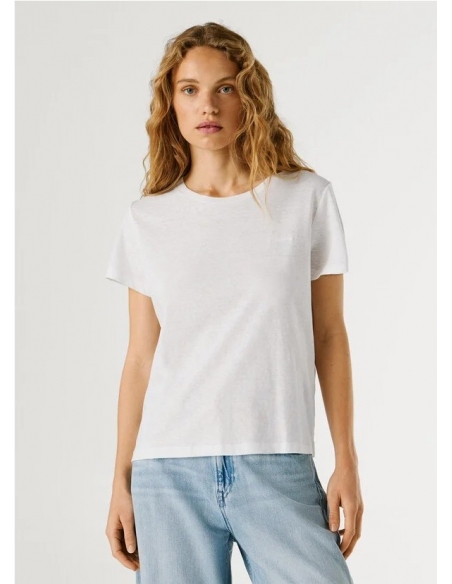 - Camiseta confeccionada en una mezcla de lino y algodón - Cuello redondo con detalle canalé - Manga corta - Color liso - Logo PEPEJEANS a tono bordado al lado izquierdo del pecho - Acabado doble pespunte en mangas y bajo