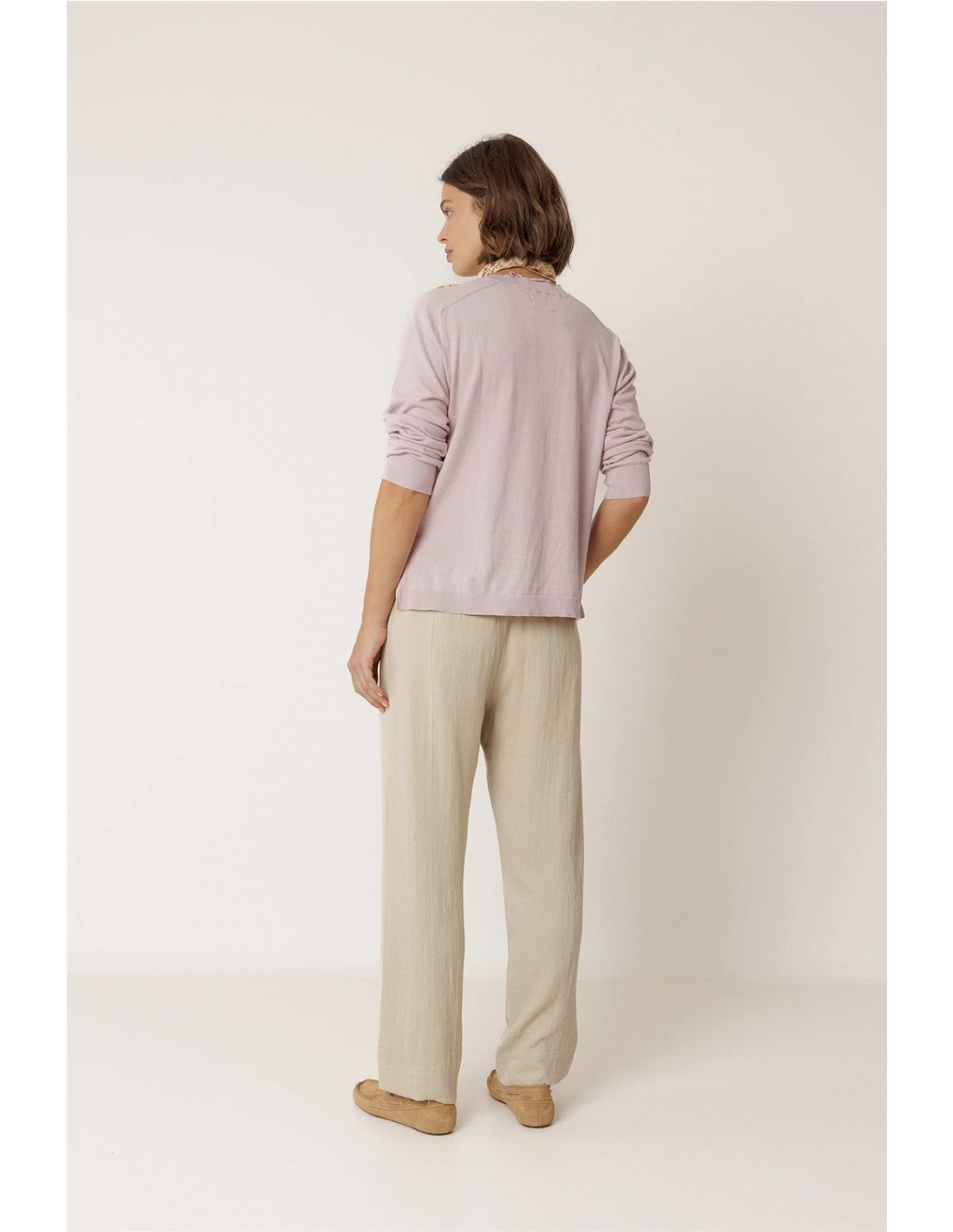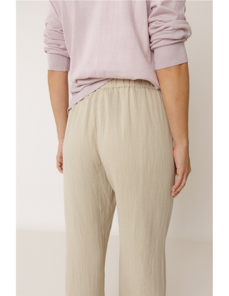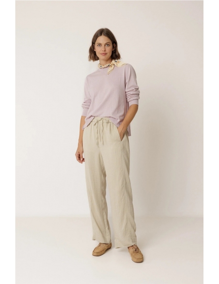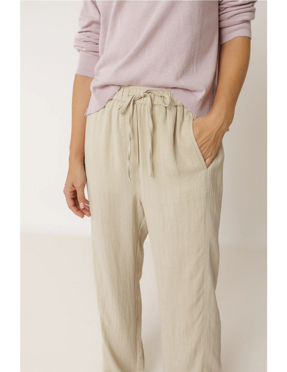 Un pantalón cómodo y fluido, ideal para llevar tanto en looks relajados como en conjuntos más cuidados. Su cintura ajustable y la caída suave del tejido lo hacen perfecto para los días más ajetreados.