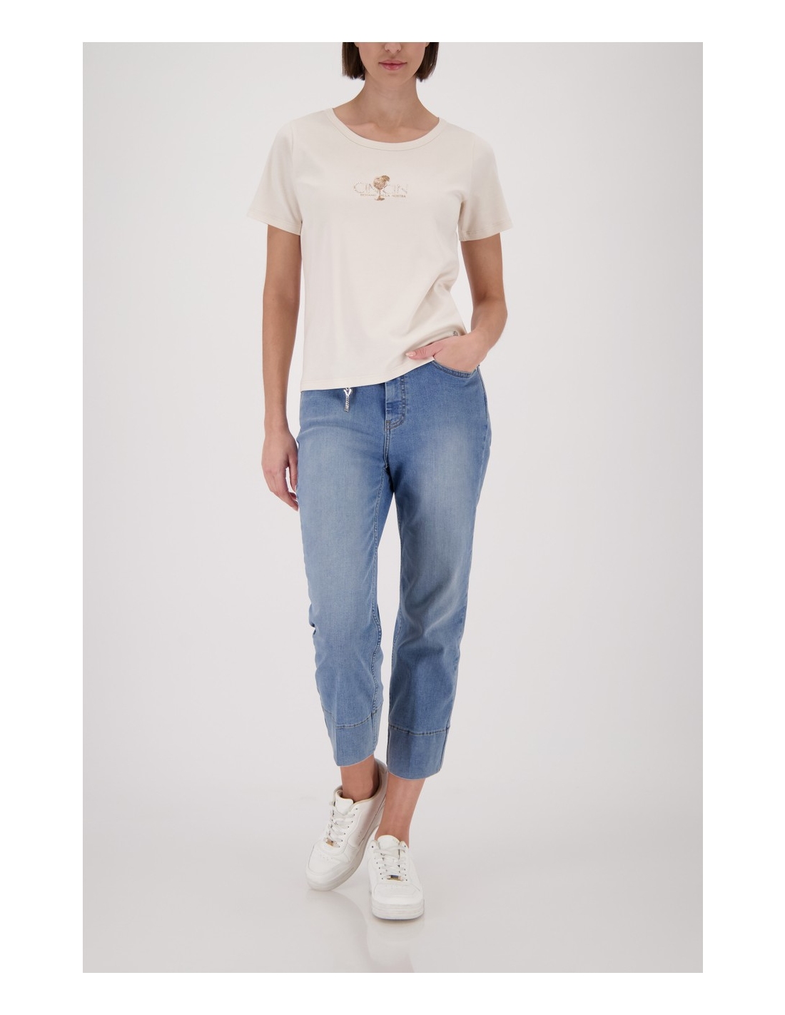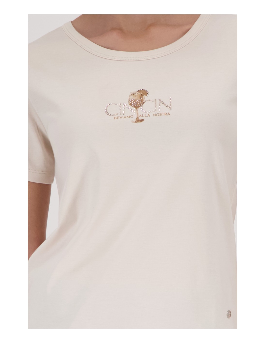 Esta camiseta confeccionada 100% algodón impresiona por su tacto suave, la inscripción "Cin Cin", brillantes diamantes de imitación y un corte moderno.