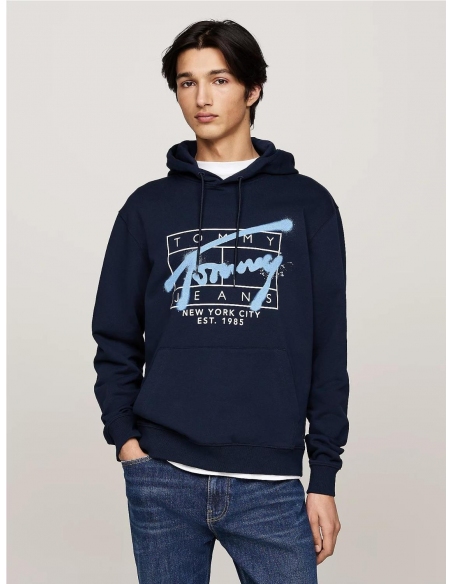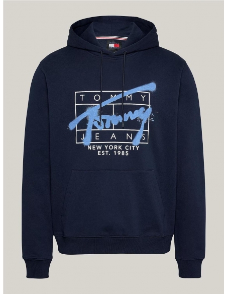 Añade un toque urbano a tus looks con esta sudadera con capucha, confeccionada en puro algodón y adornada con un llamativo logo distintivo estilo graffiti. Características • Puro algodón • Cuello con capucha y cordón • Bolsillo canguro • Puños y bajo de punto elástico • Logo distintivo de Tommy Jeans estilo graffiti en el pecho • Detalles distintivos de Tommy Jeans