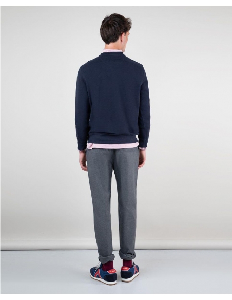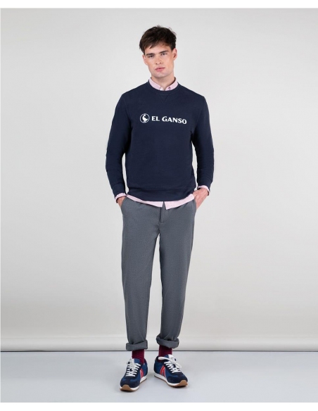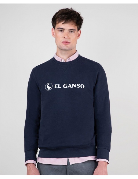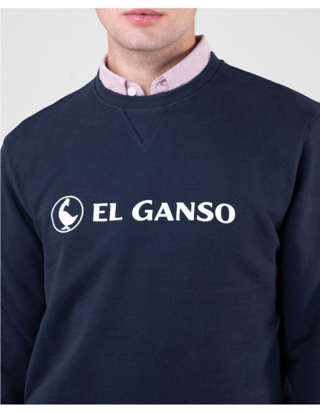 Sudadera de hombre lisa confeccionada en felpa 100% algodón. Tiene un corte Regular Fit, cuello redondo y manga larga. Estampado frontal con logo El Ganso.