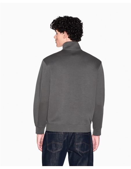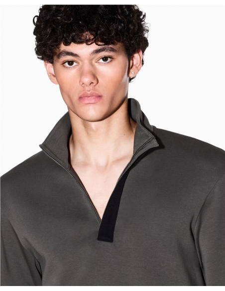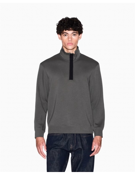 Sudadera confeccionada en una cómoda mezcla de algodón elástico, una prenda que combina un diseño minimalista con detalles refinados para un estilo contemporáneo. Esta sudadera destaca por su cuello alto con cierre de botones ocultos sobre una tapeta de tejido técnico, un toque sofisticado que la distingue de la sudadera clásica. Su silueta limpia, mangas largas y detalles acanalados garantizan un ajuste óptimo y una comodidad ideal para el día a día.