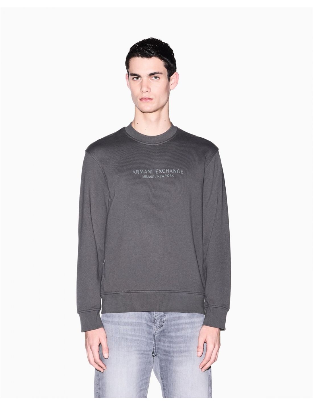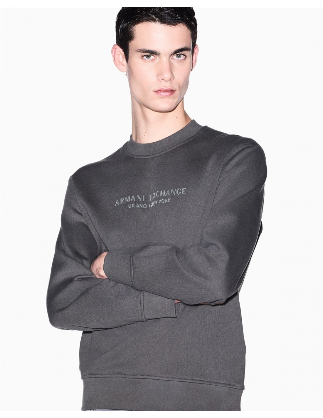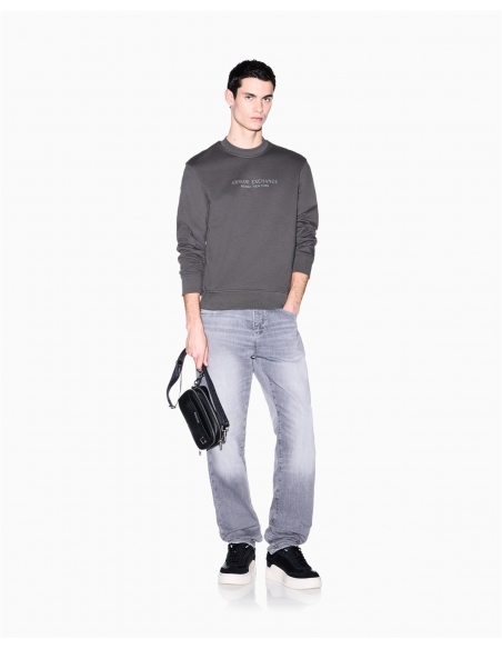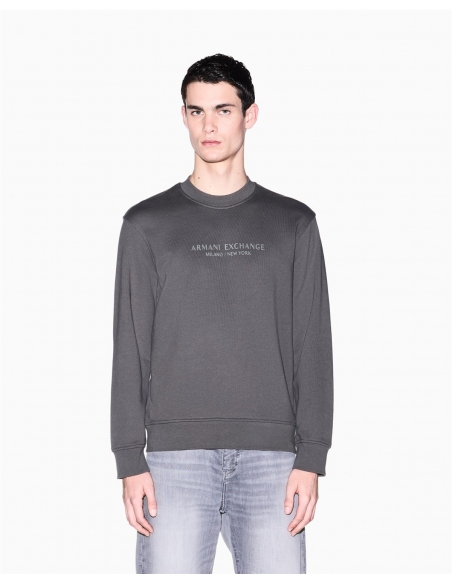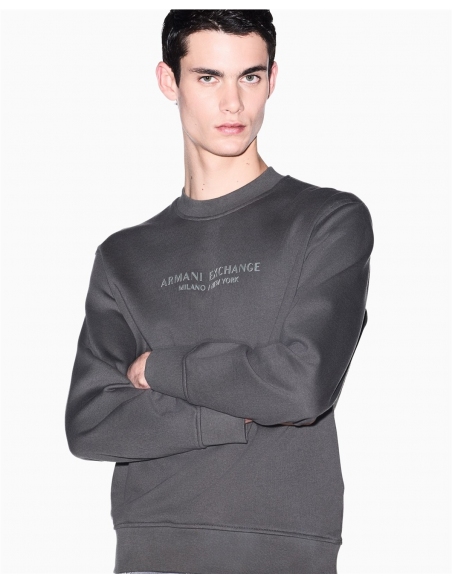 Sudadera de algodón suave, un clásico atemporal que combina comodidad y estilo minimalista. Esta prenda esencial destaca por la sofisticada inscripción "Armani Exchange Milano / New York" impresa tono sobre tono en el pecho, un detalle sutil pero efectivo. Con su clásico cuello redondo, mangas largas y detalles acanalados, ofrece un ajuste impecable y una gran sensación de comodidad.