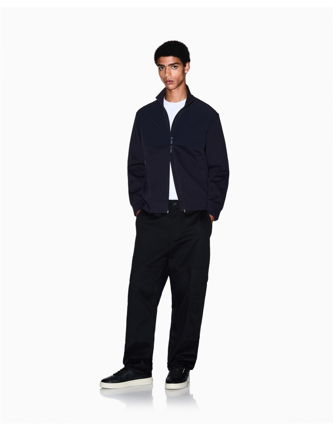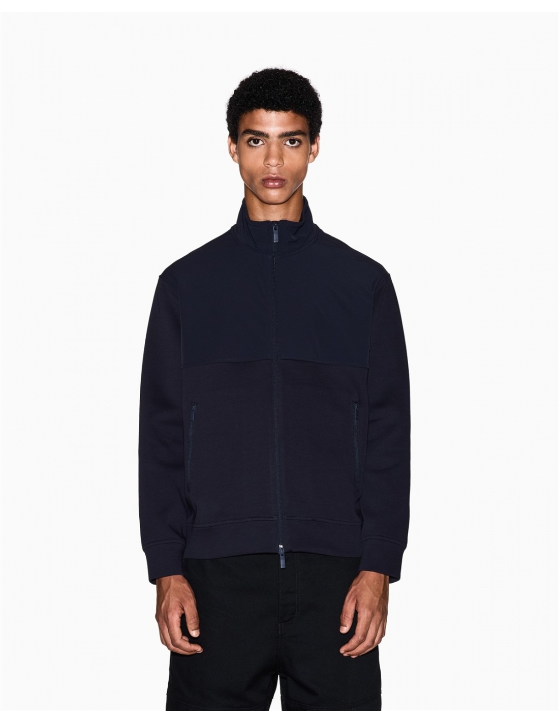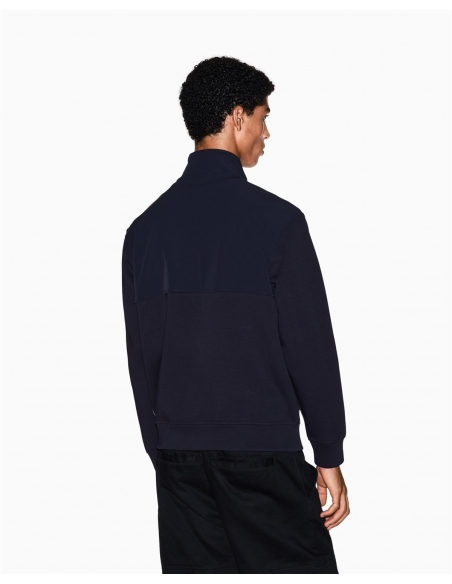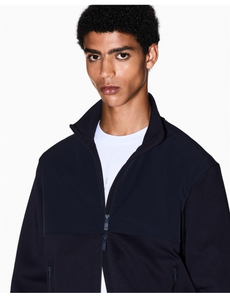 Sudadera confeccionada en una cómoda mezcla de algodón elástico, una prenda que combina un diseño contemporáneo con una funcionalidad impecable. Esta sudadera destaca por su llamativo efecto de bloques de color, con la parte superior y el cuello alto confeccionados en un tejido técnico en contraste, un detalle que le aporta un toque dinámico y moderno. El cierre frontal con cremallera y los prácticos bolsillos laterales con cremallera la hacen perfecta para quienes buscan un estilo deportivo ref