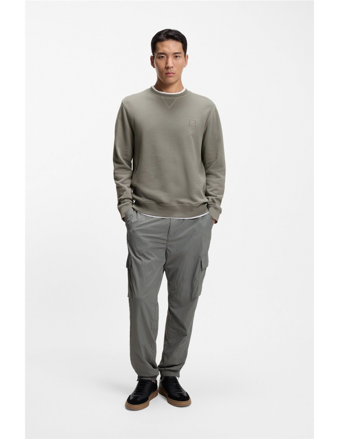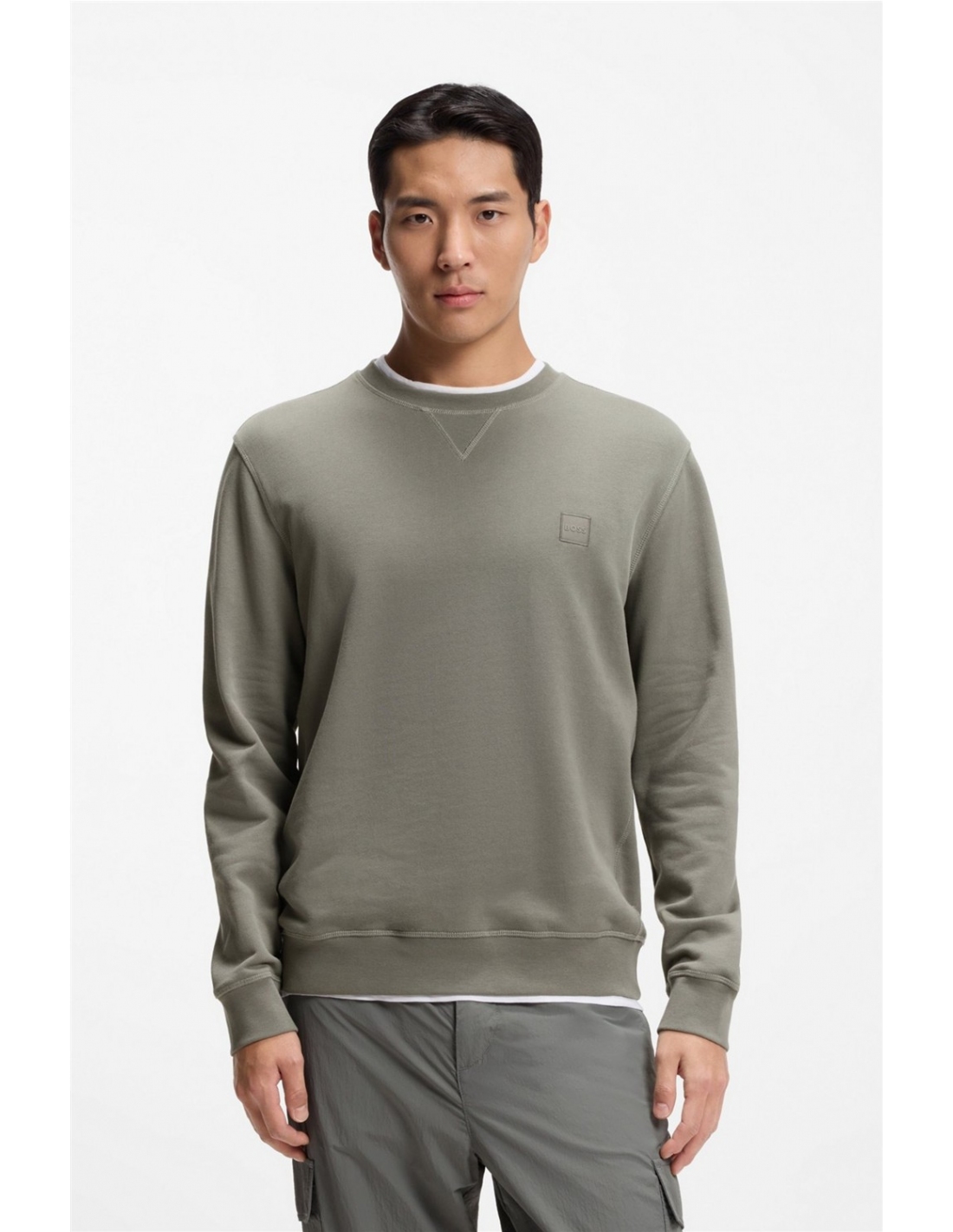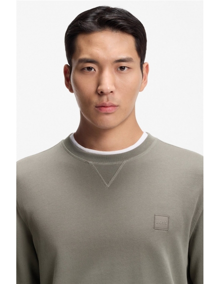 Con un aplique de logo tonal, esta sudadera BOSS Hombre aporta un aire renovado a cualquier look casual. Diseño straight fit en felpa de algodón. Detalle en V de aire deportivo en el cuello. Regular fit Cuello redondo Manga larga Puños acanalados