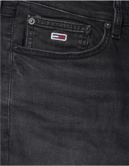 Estos vaqueros negros, confeccionados en tejido denim elástico muy cómodo, lucen un corte ajustado. Características • Tejido denim elástico de algodón • Tejido denim de bajo impacto • Efecto desteñido en muslos y rodillas • Cierre de cremallera con botón • Estilo de cinco bolsillos • Detalles distintivos de Tommy Jeans • Parche con el logo de Tommy Jeans en el pequeño bolsillo delantero