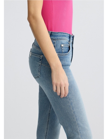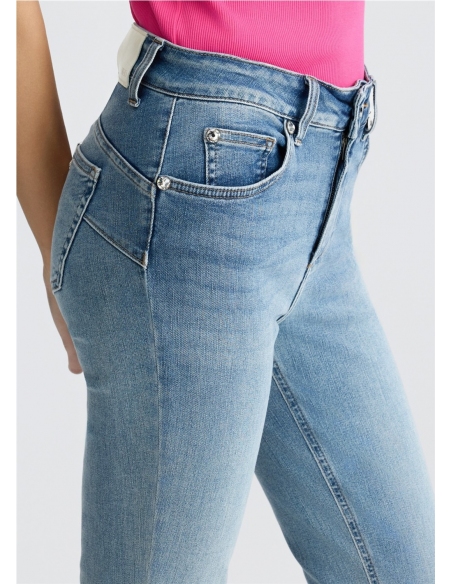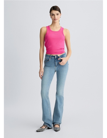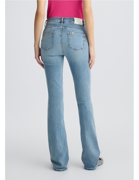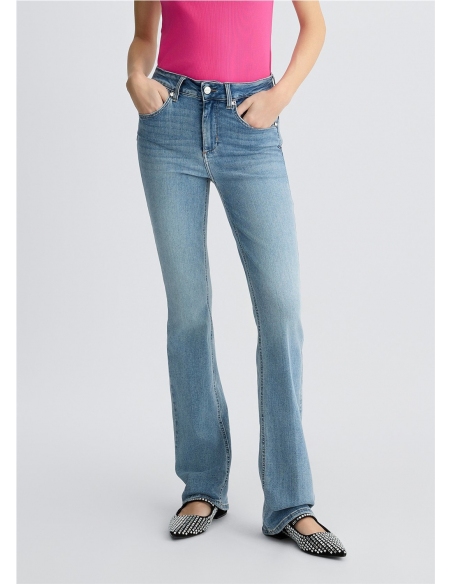Vaqueros bootcut de tiro alto De gran altura Lavado a la piedra Pierna ligeramente acampanada Longitud de la pierna: 85 cm Largo del dobladillo: 21,5 cm