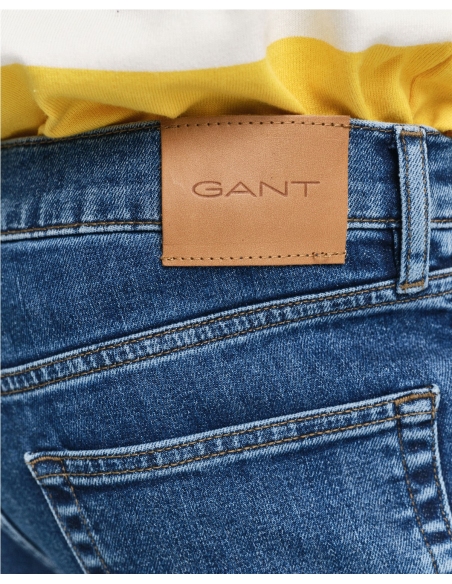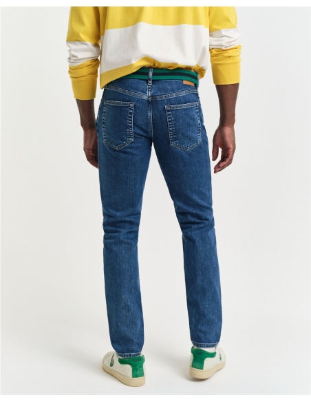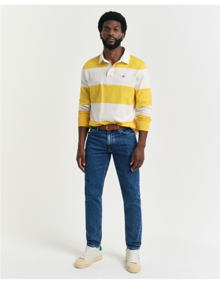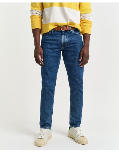Diseñados en un impecable lavado índigo, estos jeans son la adición perfecta a cualquier armario de temporada. Con un corte ajustado, tienen cintura media y pernera estrecha. Confeccionados con un diseño clásico de cinco bolsillos y cierre de cremallera, estos jeans presentan botones y remaches de la marca, además de un parche de cuero con el logo en la cinturilla trasera.