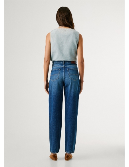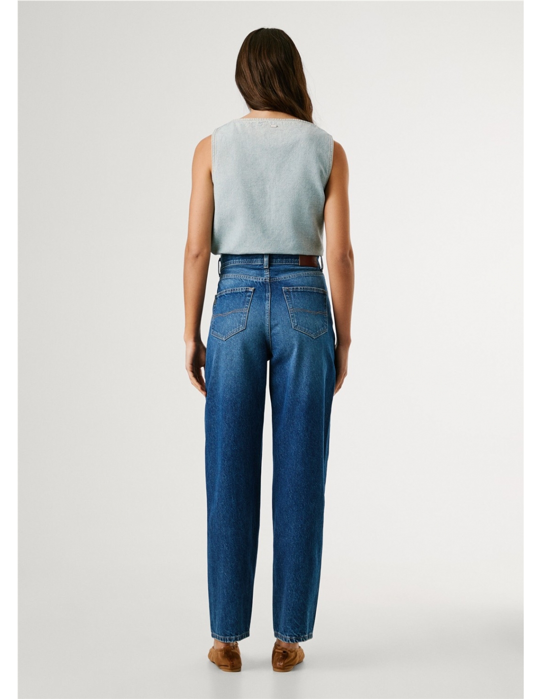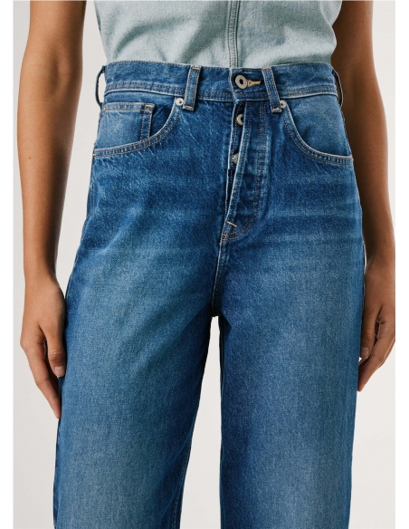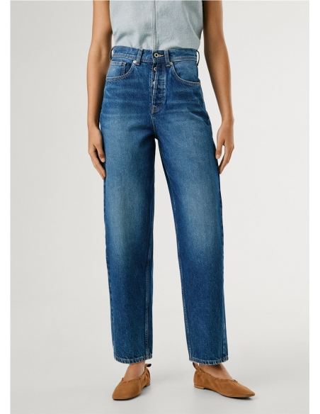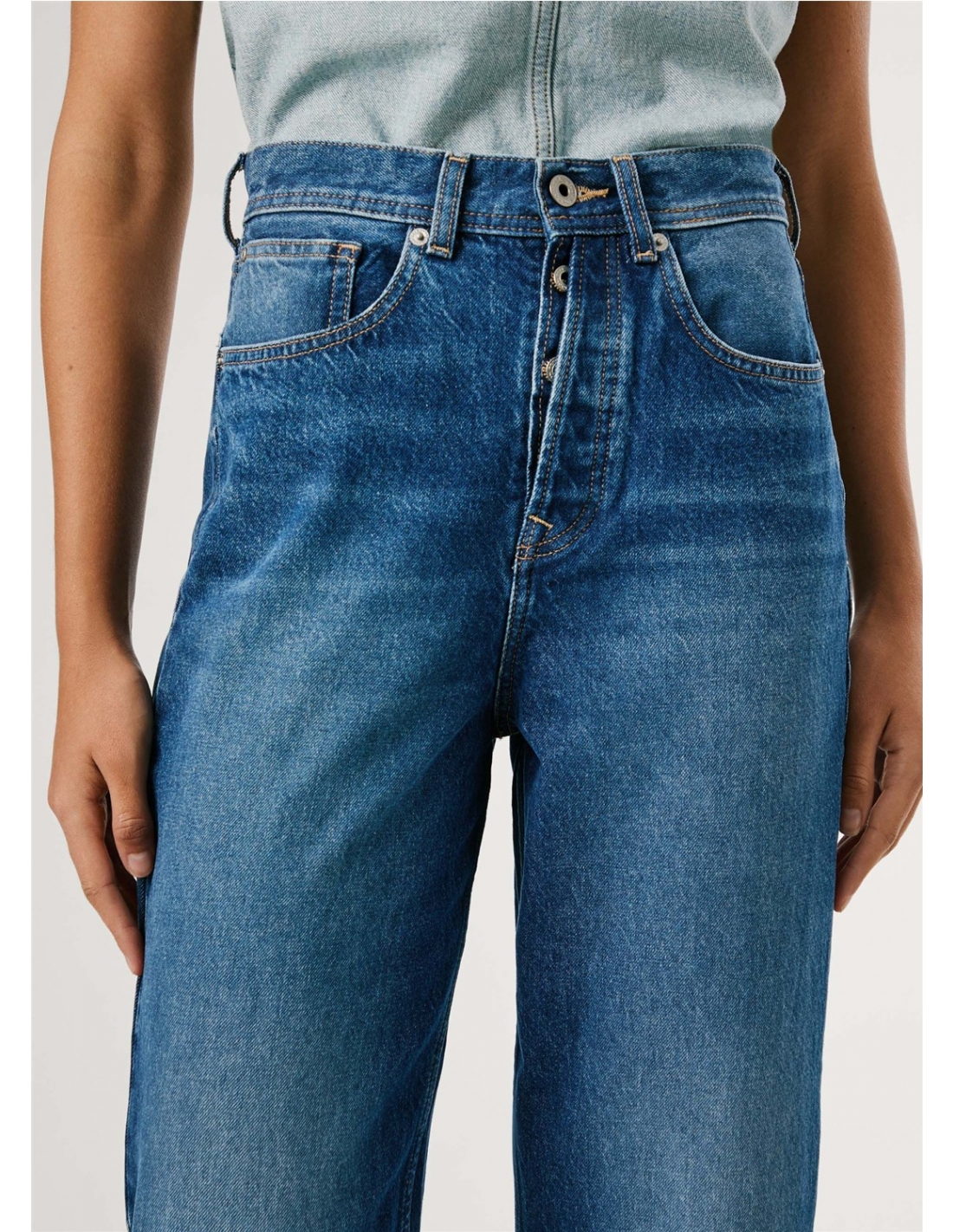 Jeans tipo Barrel: Un corte moderno convertido en clásico: amplio en la pierna y estrecho en el tobillo. en fit Loose: Este corte holgado presenta cadera y cintura bajas para quienes buscan un toque moderno. - Tiro alto - Pierna Tapered - Estilo 5 bolsillos - Lavado en piedra sunfade - Cierre de botones parcialmente expuesto - Detalle stitching en bolsillos traseros - Remaches metálicos con logo grabado - Tejido denim rígido con efecto desgastado - Fabricado mediante prácticas y materia