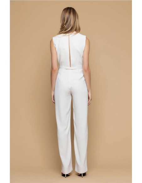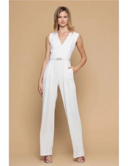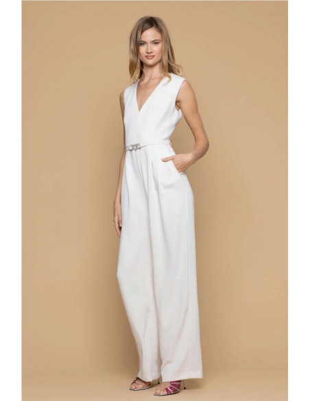 Elegante mono de mujer de la colección Sogold con pliegues en la parte delantera y cinturón con hebilla de pedrería.