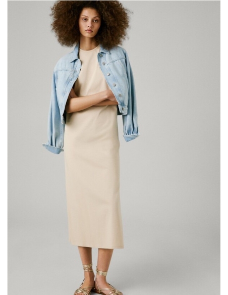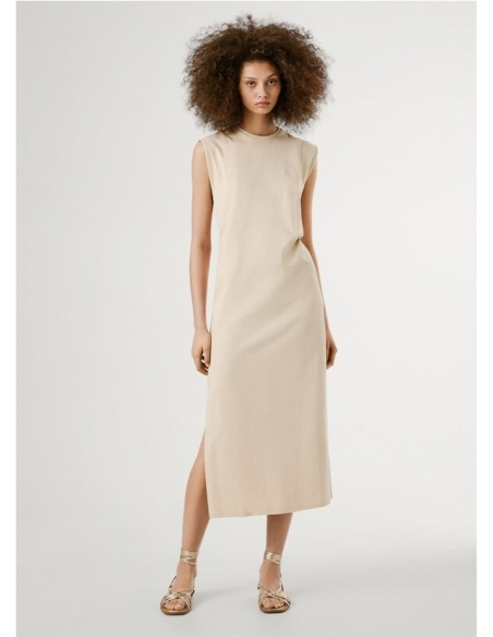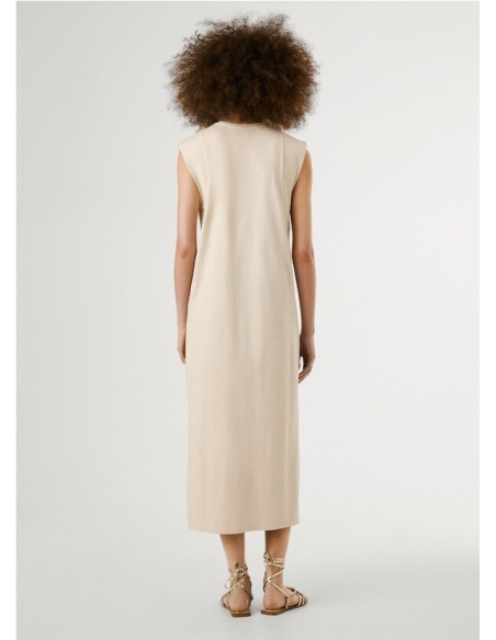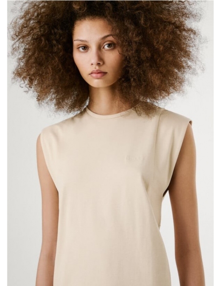 Vestido largo con cuello redondo y sin mangas, logotipo bordado en el pecho, cuello acanalado y doble capa en las sisas. Composición: 100 % algodón.