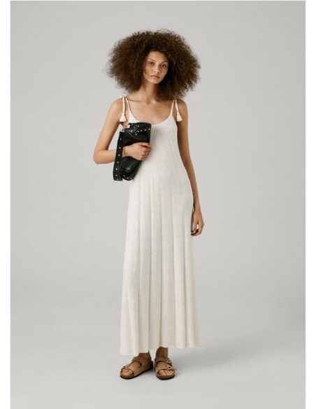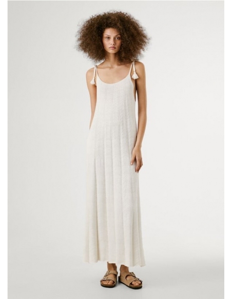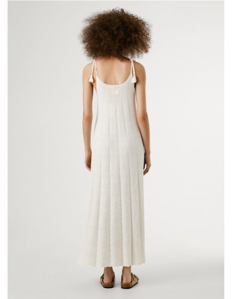 El algodón sostenible minimiza el uso de productos químicos nocivos, mejora la calidad del suelo y previene la contaminación para ayudar a proteger la salud de los agricultores y la vida silvestre local. - Vestido largo de tela texturizada - Tirantes ajustables en los hombros - Detalle de borlas en los extremos de los tirantes - Acabado ondulado en el dobladillo - Parche del logotipo de PEPE JEANS en la espalda - Hecho de 100% algodón sostenible