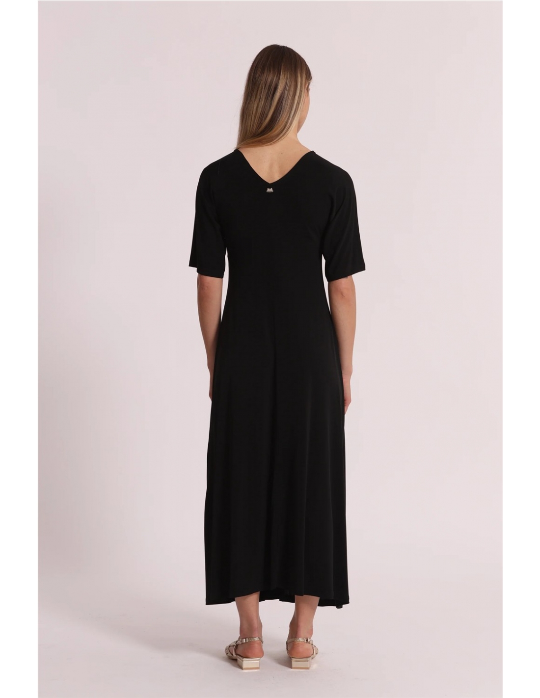 VESTIDO LARGO CON MANGAS TRES CUARTOS