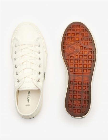 Un clásico imprescindible con un atractivo atemporal. Las zapatillas Backcourt, inspiradas en el legado de Lacoste, incorporan logos sutiles, detalles moldeados y una puntera con diseño de L entrelazado y pespuntes decorativos. Dos hileras de pespuntes decorativos en el empeine Ojales de metal planos Banda de goma de acabado satinado Diseño con doble vulcanización Logo verde clásico bordado
