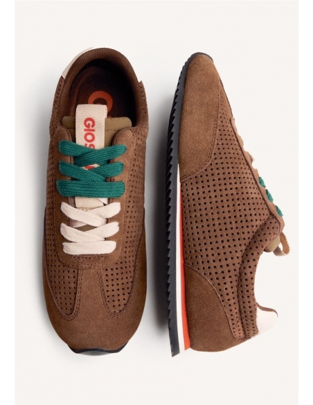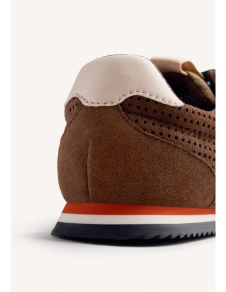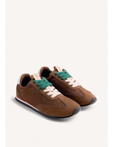 Zapatillas de piel serraje con microperforado. Este modelo destaca por su flexibilidad y ligereza al prescindir de topes y contrafuertes. Cuentan con plantilla acolchada y extraíble. Altura cuña: 1 cm.