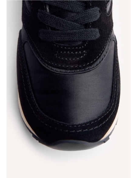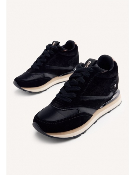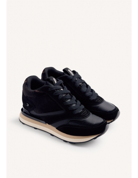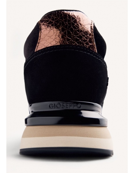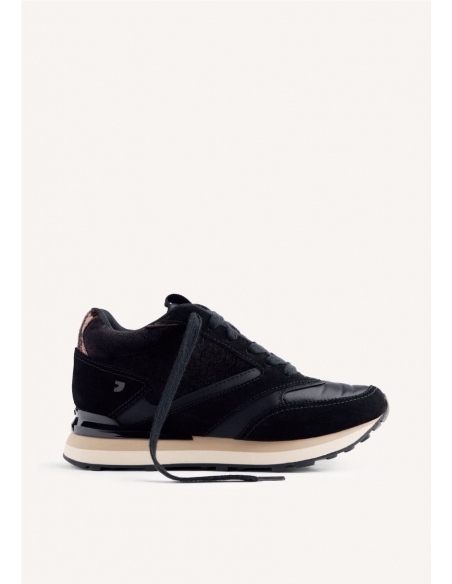 Zapatillas de piel serraje con cuña interna. Piezas satinadas, aterciopeladas y craquelado metalizado en el talón. Cuentan con plantilla acolchada y estabilizador en el talón. Altura cuña interna: 3 cm.