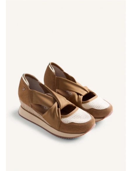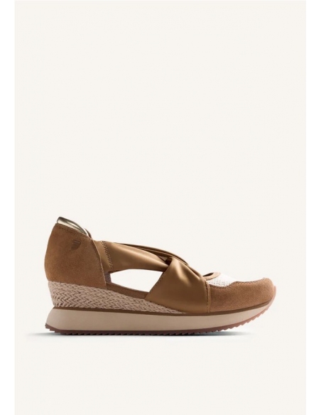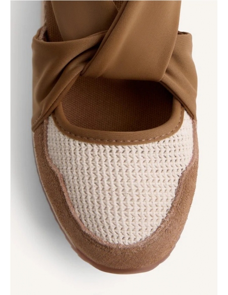 Zapatillas abiertas con piel serraje, crochet hecho a mano y cuña forrada estilo yute. Cuentan con planta acolchada y tiras de sujeción a lo largo del empeine. Altura cuña: 5,5 cm.