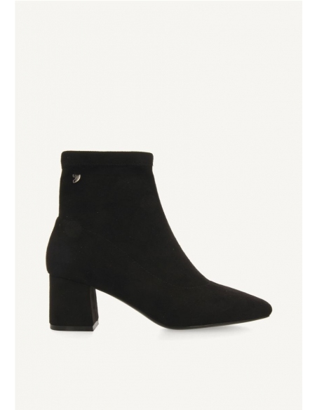 Botines elásticos con tacón y punta cuadrada. La planta es de piel transpirable con acolchado y el piso de caucho. Altura del tacón: 5,5cm.