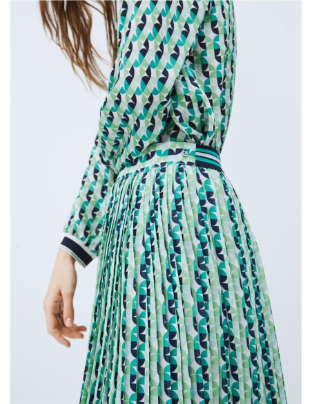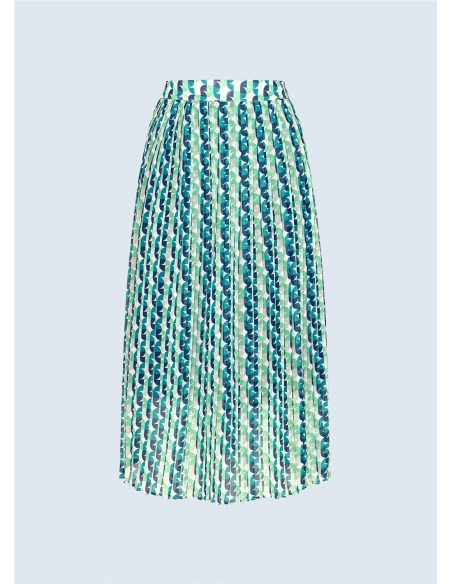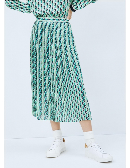 - Falda midi estampada - Tejido fluido - Cintura elástica - Detalle rayas deportivas - Forro interior